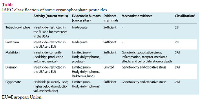 Carcinogenicity Of Tetrachlorvinphos, Parathion, Malathion, Diazinon, And Glyphosate, The Lancet, May 2015 (register to gain free access)