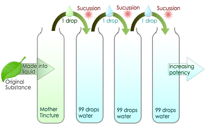 A homeopathic remedy starts off with a substance, say grass clippings to treat hay fever, and mixes one part of that to 99 parts water. It doesn’t stop there. One drop of that diluted substance is then mixed with another 99 parts water. And again and again. This article says up to 30 times but some dilutions go up to 1000 times or more. You’d be hard pressed to find one molecule of the original substance in the final substance. It is a pure sugar pill. Wait, the best part … it becomes more potent the more it’s diluted.