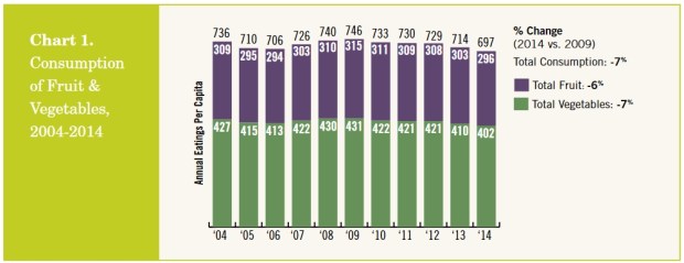 According to the Produce for Better Health Foundation, national consumption of fruits and vegetables has declined 7% over the past five years: