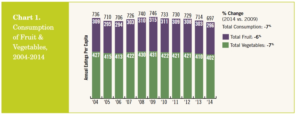 According to the Produce for Better Health Foundation, national consumption of fruits and vegetables has declined 7% over the past five years:
