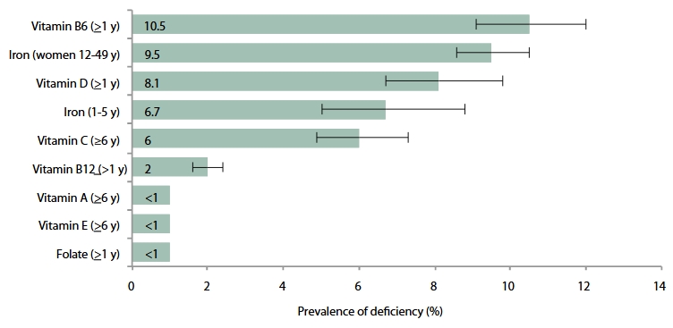 Figure 1. Prevalence estimates of nutrient deficiencies in U.S. persons, National Health and Nutrition Examination Survey, 2003–2006.
