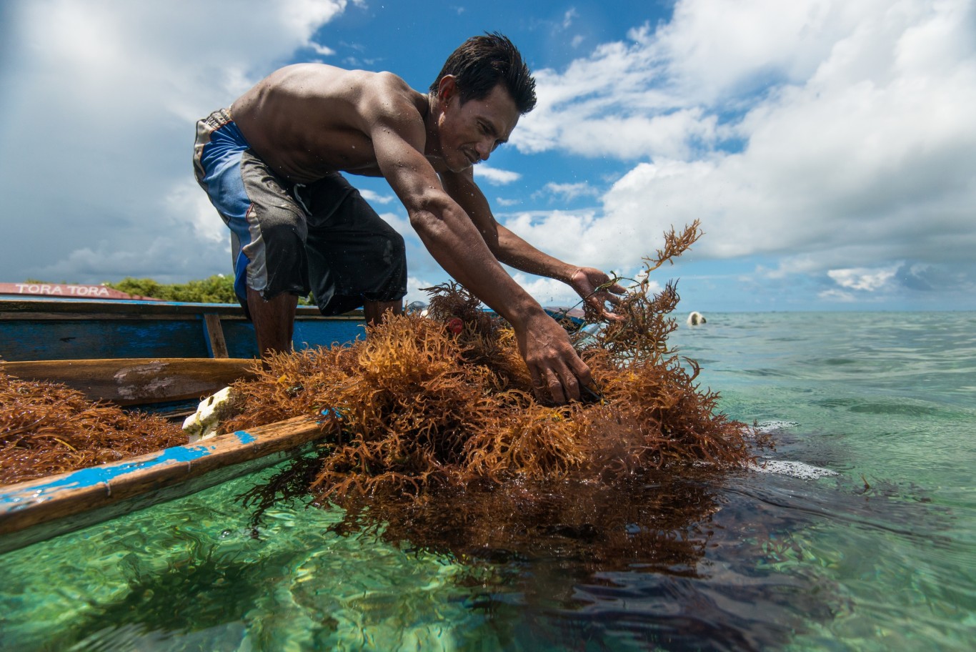 Carrageenan is extracted from a type of seaweed called Irish moss, here being harvested in the Philippines.