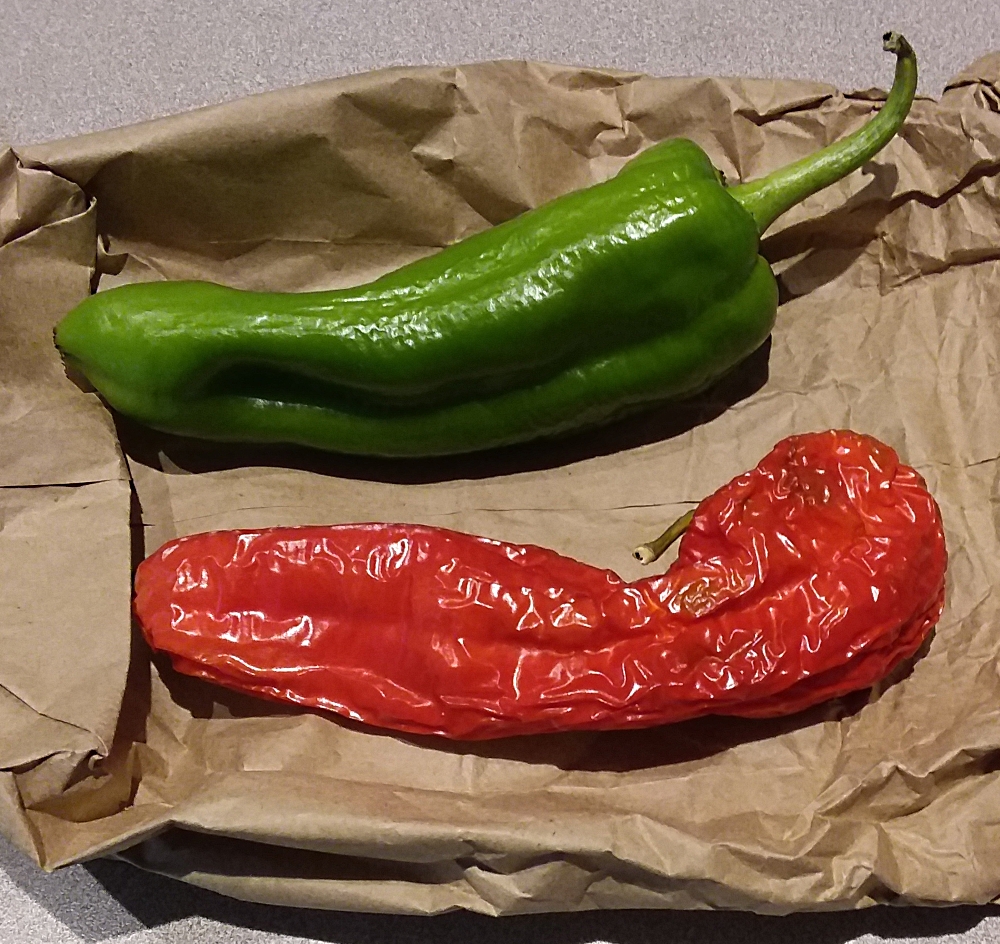 An Anaheim pepper is a mild variety of the cultivar ‘New Mexico No. 9’. The name ‘Anaheim’ derives from Emilio Ortega, a farmer who brought the seeds from New Mexico to the Anaheim, California, area in 1894.