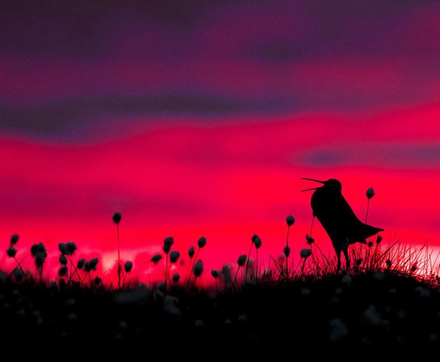 Great Snipe Silhouette By Torsten Green-Petersen. Honourable Mention In Bird Behaviour Category, in British Trust for Ornithology (BTO) Bird Photographer of the Year 2017