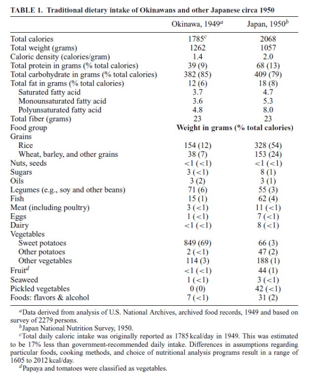 Whether you agree or not, at least you could say that the diet they ate – which was (for older Okinawans) high in carbohydrates and low in fat and protein – did not impede their long life.