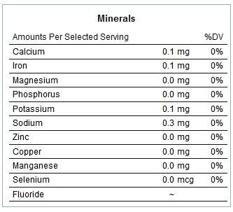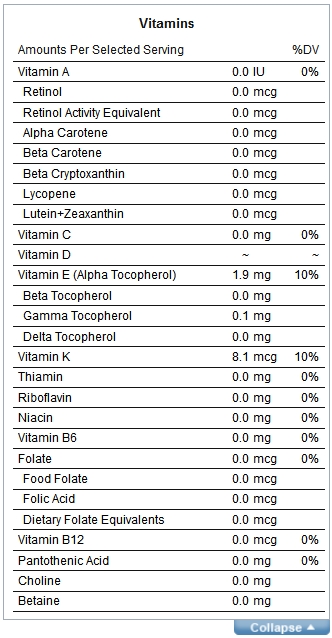 Here are the vitamins and minerals in one tablespoon of olive oil, from NutritionData: