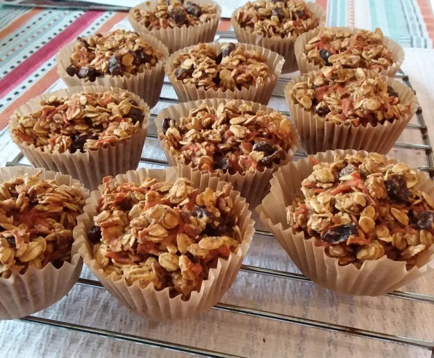 I started out spooning the dough onto a cookie sheet but it was sticky and crumbly and not easy to keep in a cookie shape. So I changed my mind mid-spooning and used the muffin cups. I’ll probably do this in the future. It kept everything together and it’s a nice way to serve.
