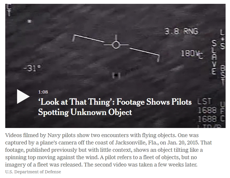 (A Pentagon spokesman did not respond to requests from The Washington Post for comment, but in December, the military confirmed the existence of a program* to investigate UFOs and said it had stopped funding the research in 2012.)