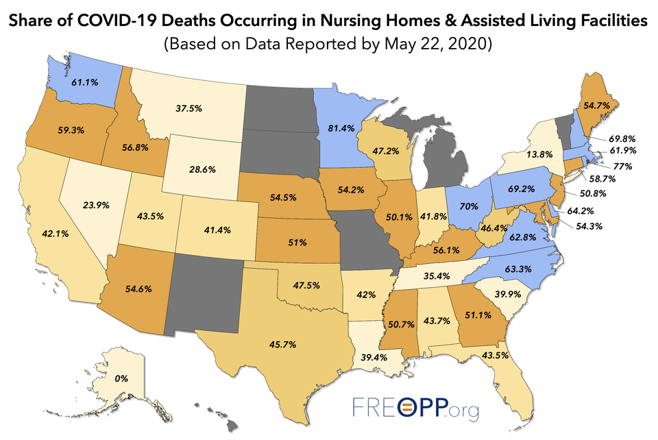 As of May 22, in the 43 states that currently report such figures, an astounding 42% of all COVID-19 deaths have taken place in nursing homes and assisted living facilities.