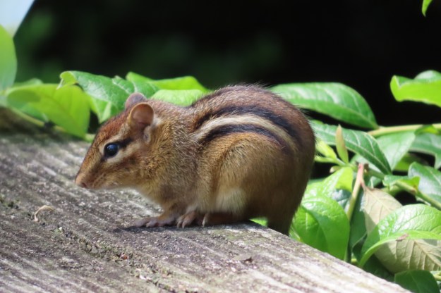 This chipmunk may be taking a nap with its eyes open. I walked up to it, about 6 feet away, and it didn’t move, like it couldn’t see me. Sat there like that for about 20 minutes. I’ve read that squirrels can sleep with their eyes open. I know that birds can.