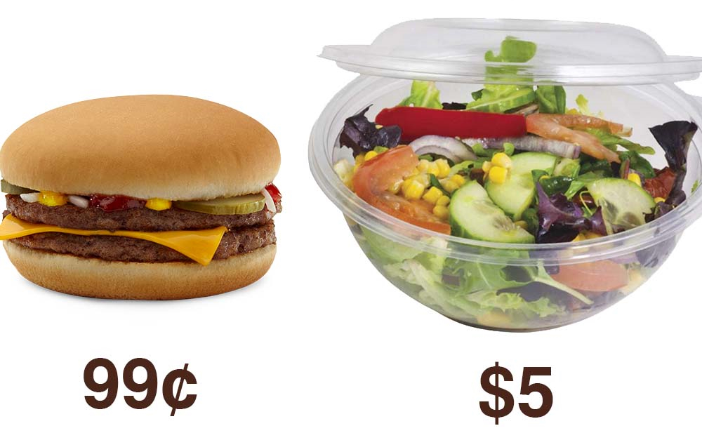 Society drives people to purchase less healthy food then derides them for their choices.