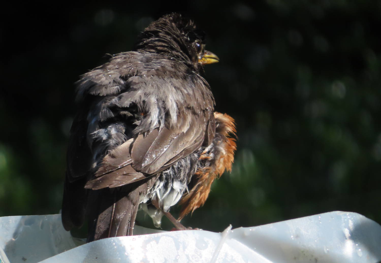They get so puffed up and bulky when they bathe, the robins especially. Robins seem to love the water. They land in these makeshift bathtubs we’ve set up and dunk their heads and shake their feathers. But they also just sit there in the water, quietly, looking around, taking things in. I can learn from a robin.
