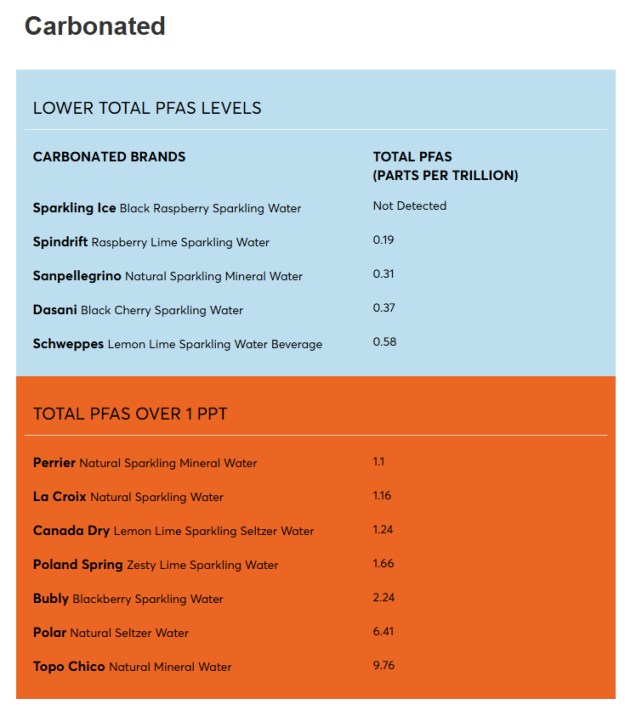 All carbonated water that CR tested fell below legal limits for heavy metals, and none had arsenic levels above CR’s recommended maximum of 3 parts per billion. But many products had measurable amounts of PFAS.