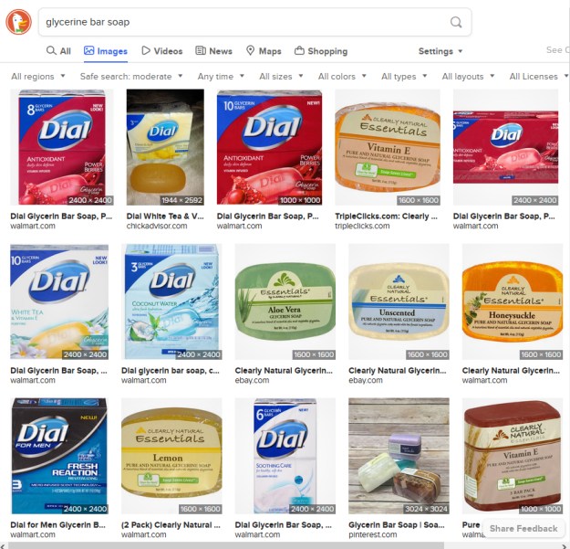 How Search Engines Differ: The Case Of Soap Leave a reply I typed “glycerine bar soap” into three search engines this morning: Duck Duck Go: Google: Bing: Click to share on X (Opens in new window) X Click to share on Facebook (Opens in new window) Facebook More Click to share on Reddit (Opens in new window) Reddit Click to email a link to a friend (Opens in new window) Email