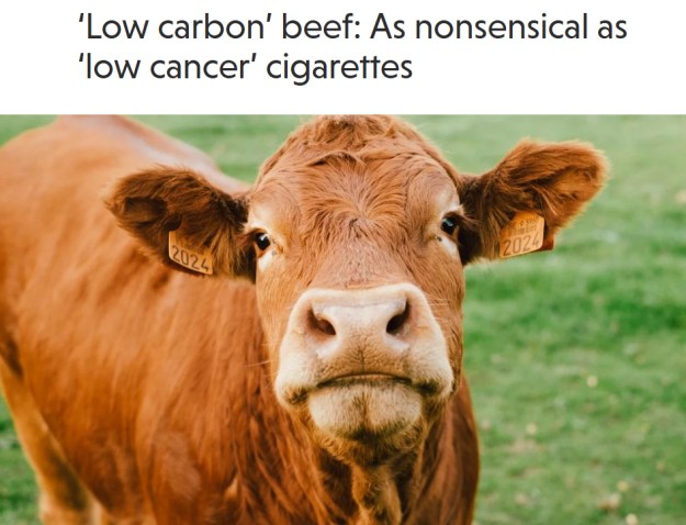 Source: ‘Low carbon’ beef: As nonsensical as ‘low cancer’ cigarettes, Geoff Horsfield, Environmental Working Goup, 26 January 2022