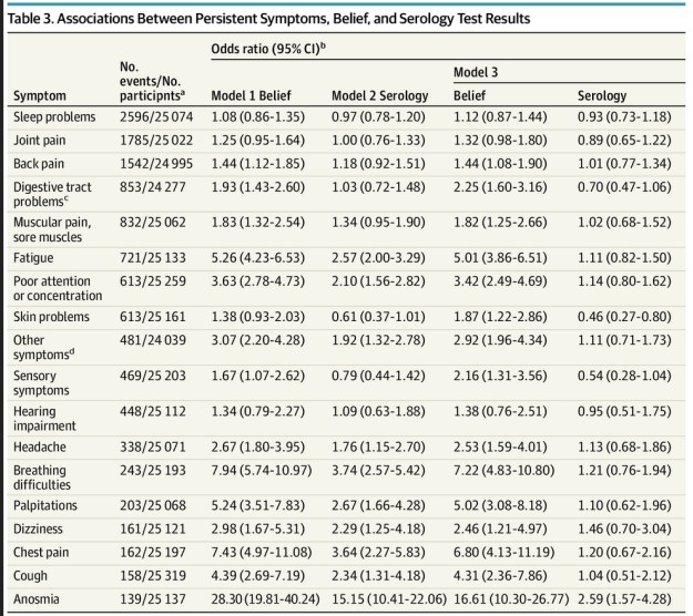 Association of Self-Reported COVID-19 Infection and SARS-CoV-2 Serology Test Results With Persistent Physical Symptoms Among French Adults During the COVID-19 Pandemic, JAMA Internal Medicine, 8 November 2021