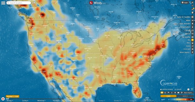 You can check you own air by visiting Windy.com, selecting “Air quality” on the right sidebar, then NO2 or other pollutant. Move around or zoom in to where you live.