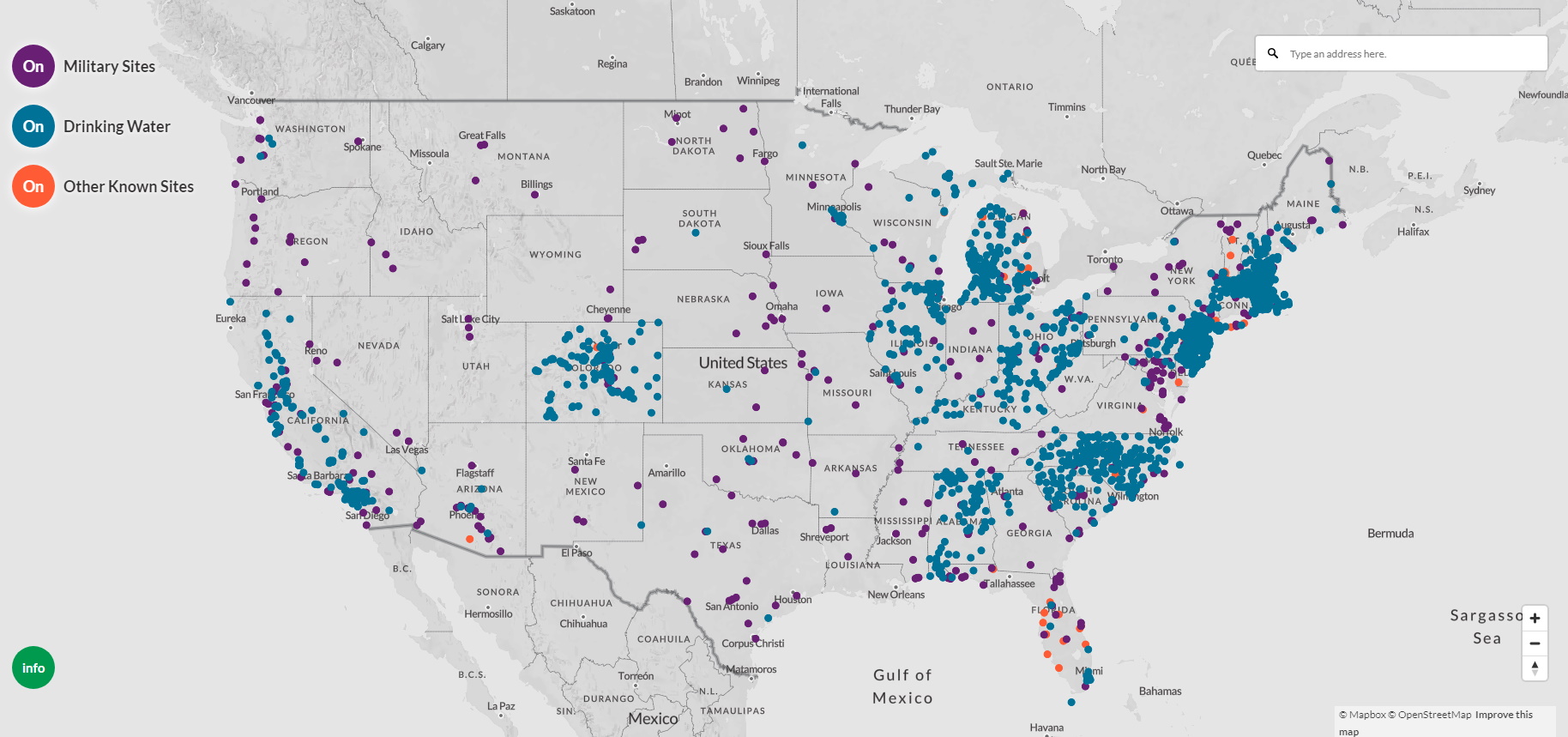 This map documents PFAS pollution in public and private water systems. Click the link for the interactive map: